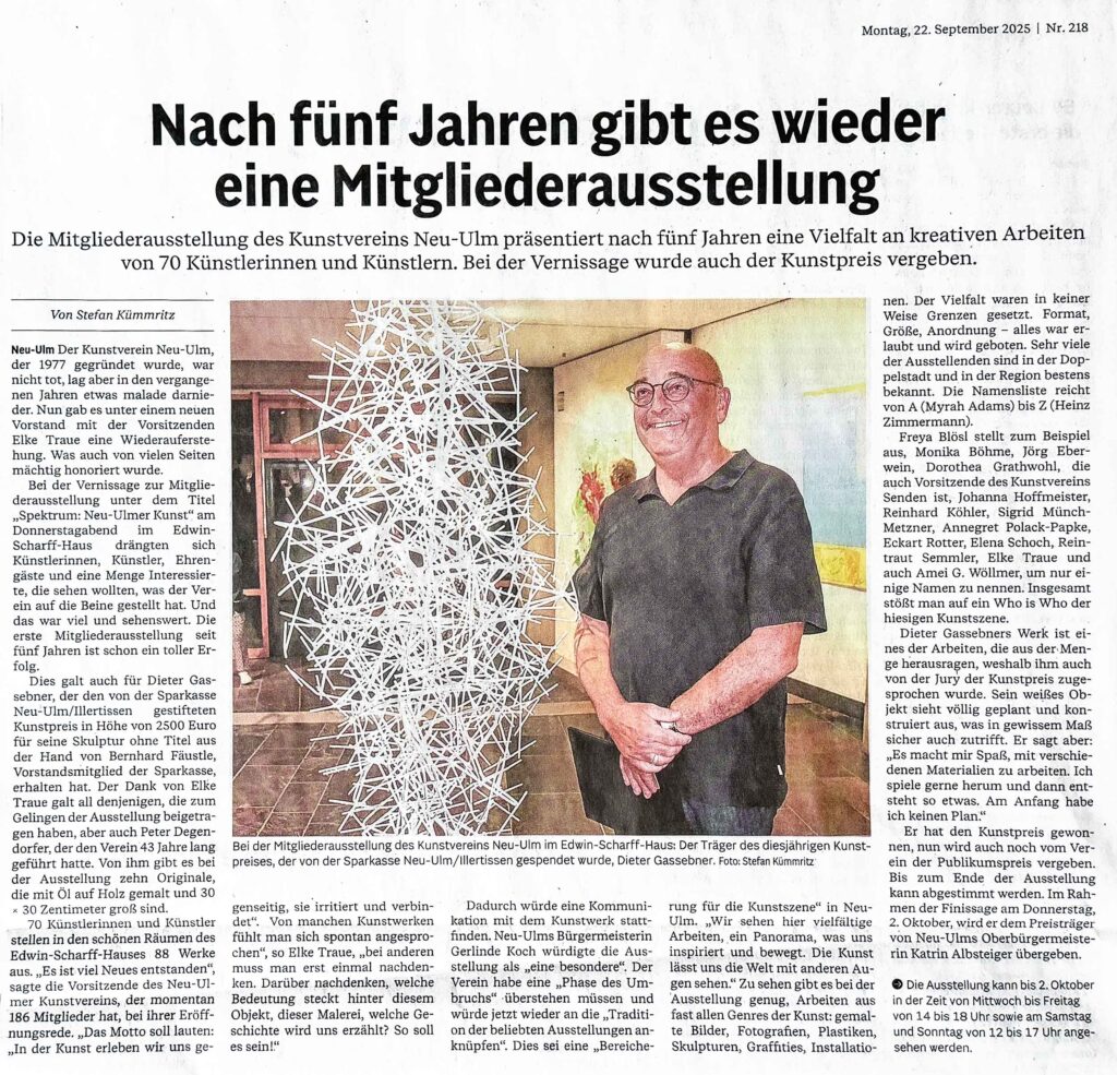 erschienen am 22.09.2025 in der Neu-Ulmer-Zeitung von Stefan Kümmritz